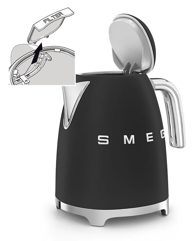 Bộ lọc cặn vôi: Dòng sản phẩm Ấm Siêu Tốc Smeg KLF03 có bộ lọc bằng thép không gỉ bên trong giúp lọc bỏ cặn vôi tự nhiên. Nó cũng có thể tháo rời để làm sạch.