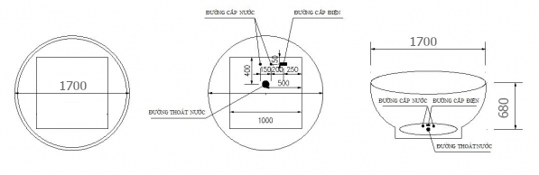 • Hình tròn, yếm bao quanh lắp độc lập giữa sàn.