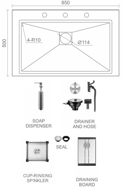 | Kích thước bồn rửa | 850 x 500 x 220 mm |