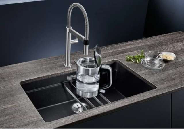 Chậu rửa bằng đá granit làm từ SILGRANIT: Vật liệu composite được cấp bằng sáng chế từ 80% thạch anh là đá nhân tạo chất lượng cao - dễ chăm sóc, chống trầy xước, bền và chịu nhiệt