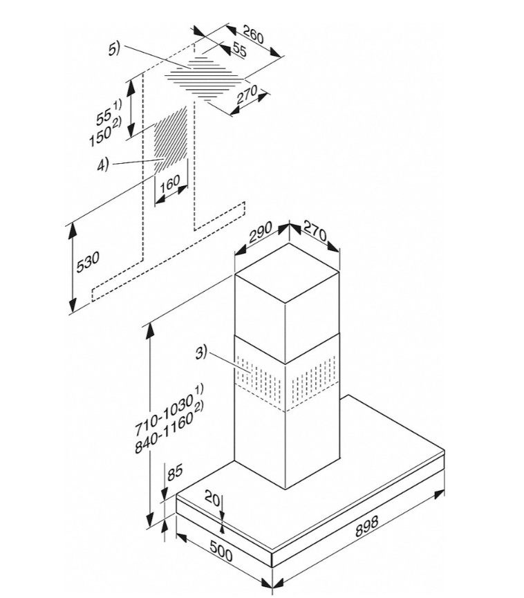 - Khoảng cách tối thiểu phía trên bếp điện: 450mm (tham khảo chi tiết trong hướng dẫn sử dụng) |