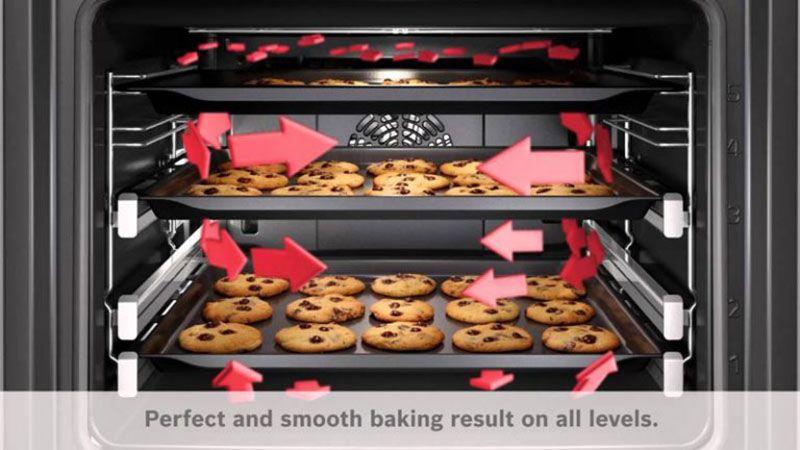 Lò Nướng Bosch HBG635BB1 Series 8 Âm Tủ được trang bị chức năng nướng 4D Hotair. Chức năng nướng với khí nóng 4D cho bạn cài đặt chế độ nướng ở bất kỳ cấp độ nào của lò nướng và luôn đạt kết quả mong muốn. Có được kết quả này là nhờ sự thay đổi hướng quay của quạt đối lưu, phân phối đều tới tất cả các vị trí. Bạn có thể nướng cả trên 4 cấp độ cho nhiều thực phẩm cùng lúc, tại nhiều vị trí đặt khay khác nhau mà món ăn vẫn có được hương vị như mong muốn từ trên xuống dưới.