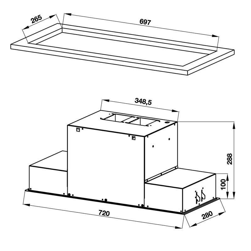 Máy hút mùi âm tủ Hafele HH-BI72A (533.80.027) thiết kế âm tủ dạng phẳng, sang trọng tiết kiệm cho không gian bếp