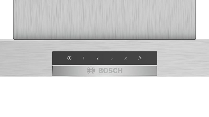 Máy Hút Mùi Gắn Tường BOSCH HMH.DWB66DM50B sử dụng hệ thống điều khiển điện tử thông qua TouchControl với đèn LED, điều khiển cảm ứng 4 cấp độ (3 mức công suất hút và 1 mức độ hút tăng cường). Bên cạnh đó máy hút mùi được trang bị hệ thống đèn halogen 2 x 20W với ánh sáng của đèn được phân phối đều giúp cho việc nấu nướng dễ dàng do nhìn thức ăn thật mắt hơn. Máy sử dụng các CleanAir Module có thể giảm thiểu tiếng ồn hơn so với hệ thống hút thông thường mà không giảm hiệu quả hút, độ ồn thấp chỉ 60dB