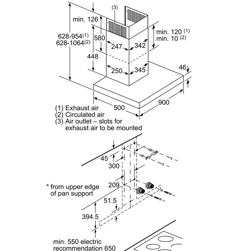 Cửa thoát khí ra ngoài của hút mùi Bosch DWB91PR50A có đường kính 120/150mm, khi lắp đặt sẽ được nối với ống dẫn khí ra môi trường bên ngoài đảm bảo những mùi thức ăn dầu mỡ khó chịu được hút xả qua đường ống thoát một cách dễ dàng nhất.