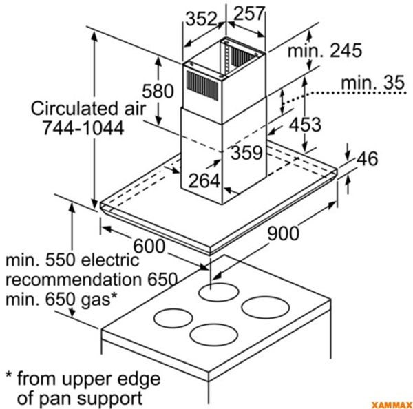 Kích thước máy hút mùi Bosch DIB091E51 là 90cm phù hợp với đa số không gian bếp gia đình Việt.