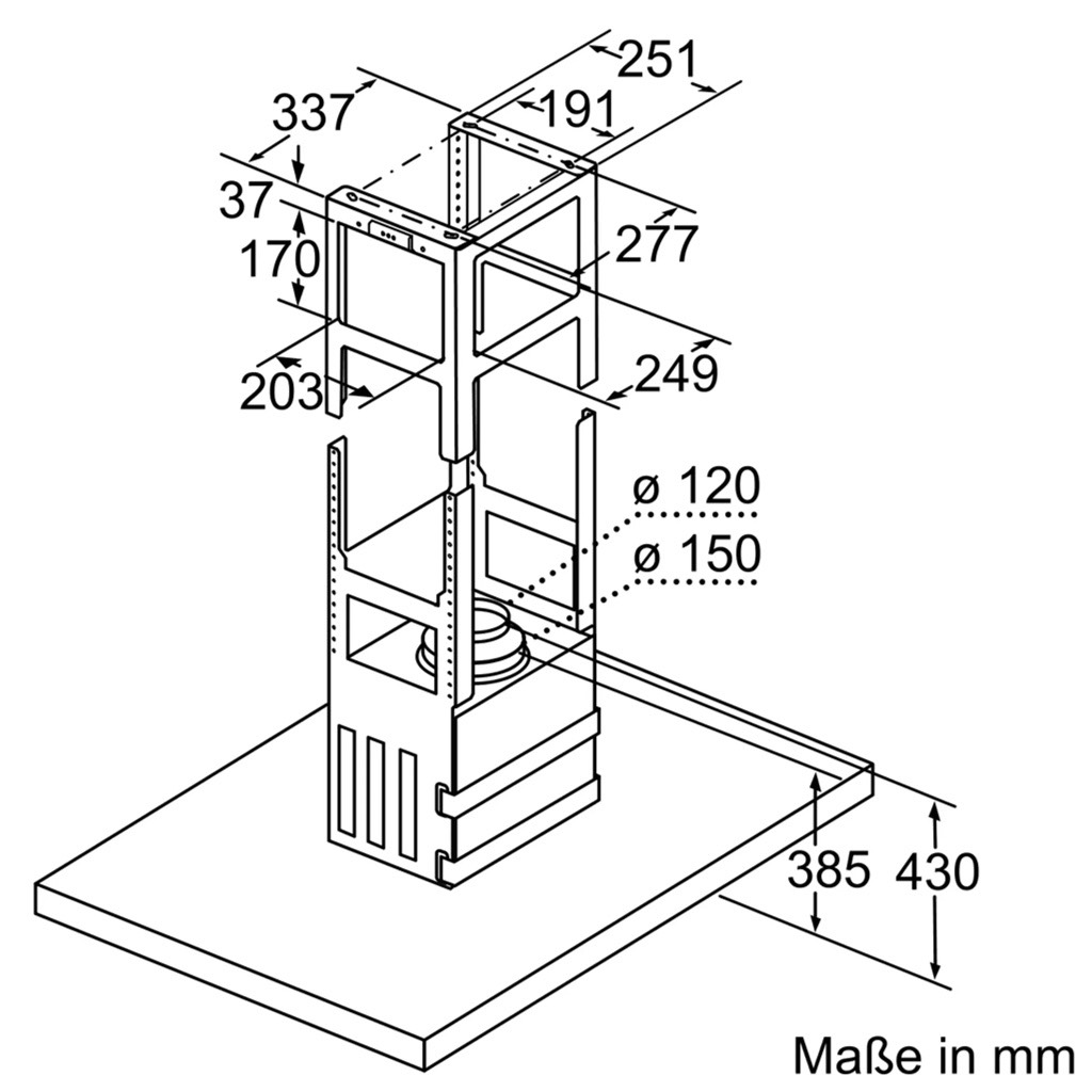 Máy hút mùi đảo Bosch DIB98JQ50 có chiều ngang là 90cm, được lắp đặt phía trên gian bếp giúp tiết kiệm không gian bếp. Và phù hợp với nhiều phong cách thiết kế phòng bếp hiện đại. Hiệu quả hút mùi mạnh mẽ bởi đường ống thoát khí có đường kính 120/150mm.