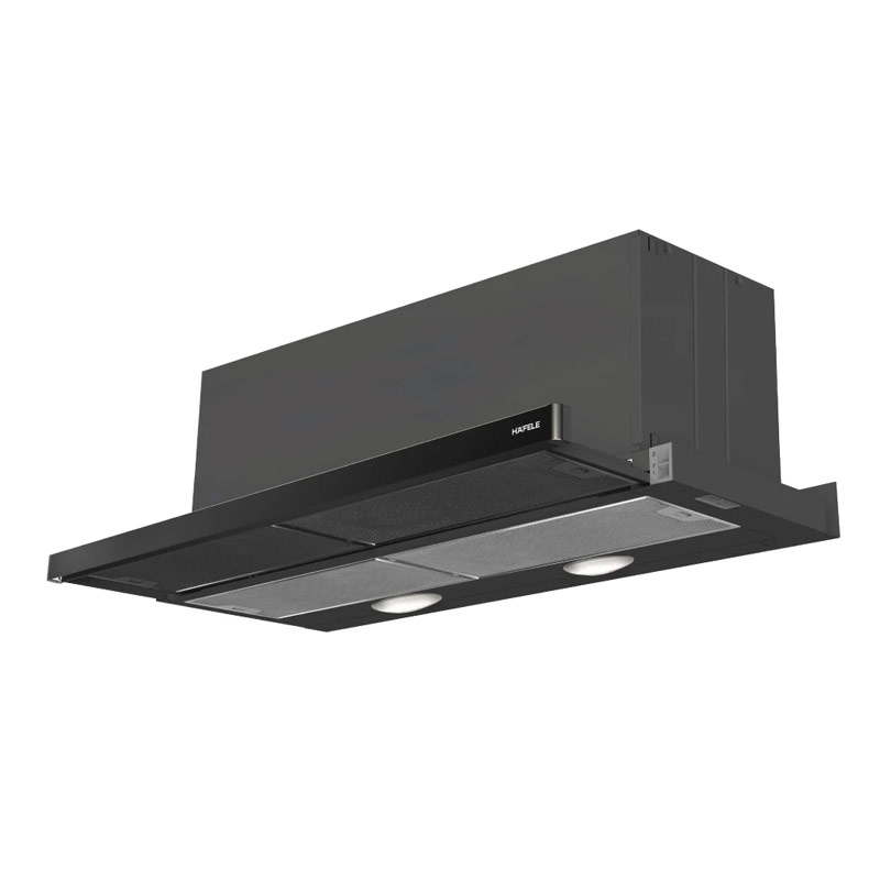 Máy hút mùi thiết kế dạng âm tủ kéo rút chiều ngang 69.8 cm, mặt kính đen