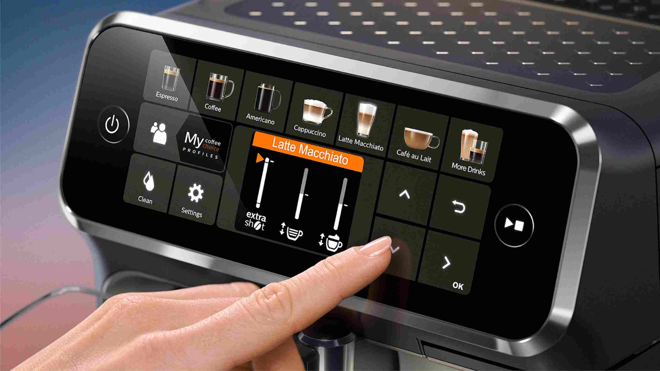- Dễ dàng lựa chọn cà phê của bạn thông qua màn hình trực quan: Với màn hình thân thiện với người dùng của chúng tôi, bạn không còn xa nữa để có tách cà phê thơm ngon tiếp theo của mình. Chỉ trong vài bước là bạn có thể điều chỉnh khẩu vị cho hạt tươi và thưởng thức ngay tách cà phê thơm ngon tiếp theo của mình.