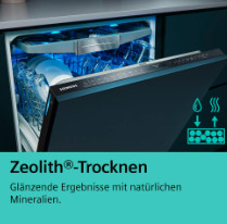 Khi đổ nước vào máy rửa bát, đồ sành sứ, cụ thể là đồ sành sứ nhựa, thường phải được làm khô bằng tay. Với máy rửa bát PerfectDry thì không. Công nghệ Zeolith® đã được cấp bằng sáng chế cho phép bạn đạt được kết quả sấy khô hoàn hảo. Zeolite là một khoáng chất tự nhiên sử dụng độ ẩm từ giai đoạn làm sạch và giải phóng nó dưới dạng không khí ấm và khô trong giai đoạn làm khô. Điều này giúp tiết kiệm đến 20% năng lượng so với hệ thống sấy khô của máy rửa bát thông thường.