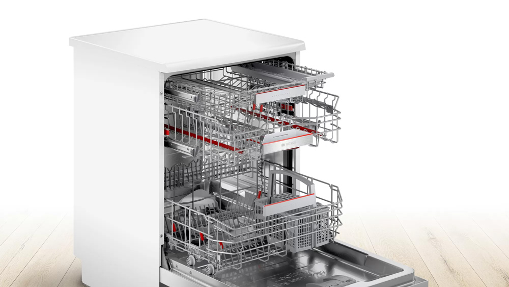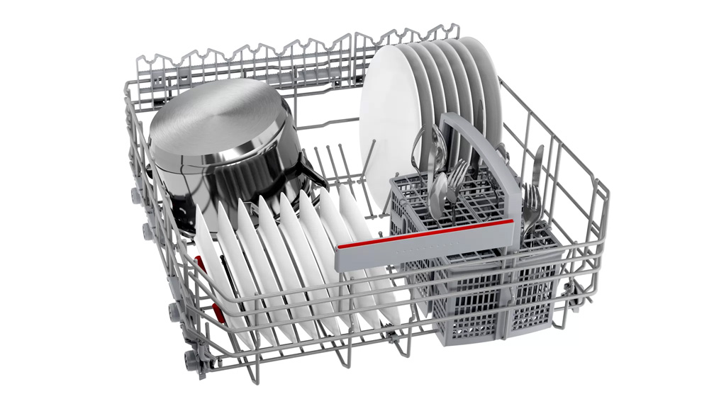 Việc tìm kiếm không gian cho các vật dụng nhà bếp nhỏ hơn như các bộ phận của máy pha cà phê, cốc nhỏ và nắp chai thể thao có thể gây bất tiện. Giỏ Extra Space thứ ba được thiết kế đặc biệt, nằm ở phía trên cùng của máy rửa bát, mang lại nhiều không gian hơn cho những món khó chứa. Nhờ giá để dao có thể di chuyển được, giỏ thứ ba cũng tăng khả năng xếp bát đĩa vào giỏ bên dưới, giúp bạn dễ dàng đặt những ly rượu lớn hơn và nhiều hơn thế nữa. Giỏ Extra Space thứ ba tạo ra một loạt khả năng mới để chứa các món ăn, đặc biệt là các vật dụng nhà bếp nhỏ hơn.