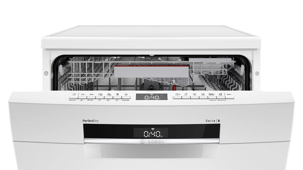 Chỉ cần nói “Alexa, switch on dishwasher”, bạn đã kích hoạt máy rửa bát Bosch SMS6ZDW08E. Hoàn toàn ra lệnh cho các thiết bị thông minh của Bosch có kết nối Home connect chỉ bằng giọng nói.