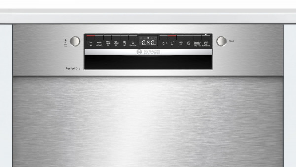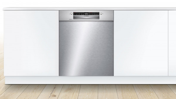 Máy rửa bát Bosch SMU6ZCS00E được thiết kế âm tủ, mặt ngoài inox mang đến vẻ sang trọng cho không gian bếp.