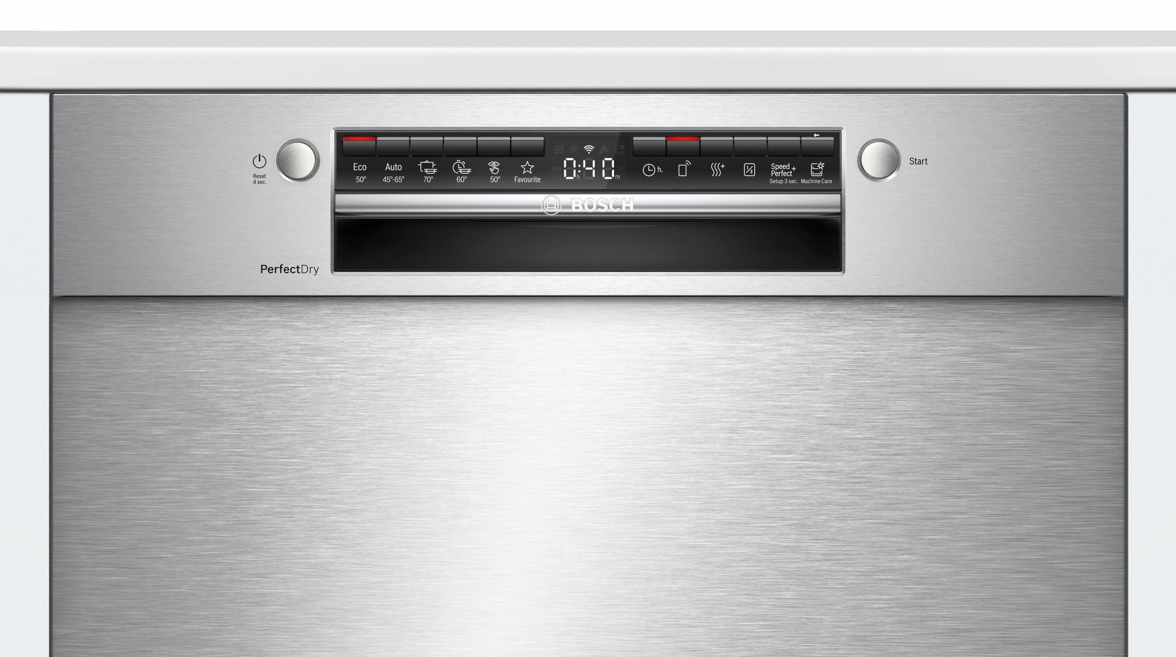 SpeedPerfect + cho phép máy có được đầy ắp bát đĩa và được làm sạch hoàn hảo với thời gian rửa giảm tới 75%, tùy thuộc vào sự kết hợp chương trình / tùy chọn đã chọn và thời điểm kích hoạt. Bạn có thể giảm thời gian chương trình còn lại bằng cách nhấn nút SpeedPerfect+ trên bảng điều khiển hoặc kích hoạt bằng cách chọn SpeedPerfect + từ ứng dụng Home Connect.
