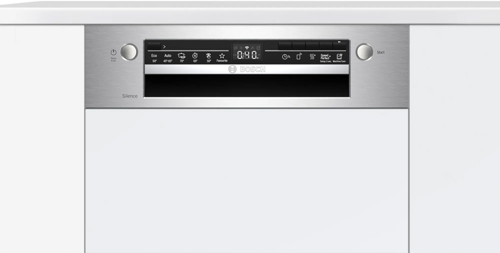 Để khởi động chương trình chỉ cần thực hiện những thao tác dễ dàng. Đầu tiên lựa chọn chương trình rửa phù hợp với tình trạng bát đĩa trong khoang rửa. Sau đó chọn nút biểu tượng “SpeedPerfect Plus” trên bảng điều khiển. Và cả hai bước này đều có thể thực hiện trên ứng dụng Home Connect.