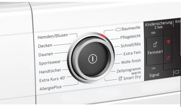 Home Connect với chức năng Easy Start sẽ đưa ra các đề xuất chương trình phù hợp – trực tiếp trên điện thoại thông minh của bạn. Điều duy nhất bạn phải làm là nhập các thuộc tính của quần áo và mục tiêu sấy khô vào ứng dụng Home Connect. Máy Sấy Bơm Nhiệt Bosch WTX87M40 Serie 8 – Loại 8 Kg sẽ mang lại kết quả hoàn hảo nhờ chương trình phù hợp.