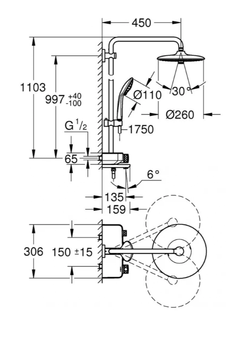 - Công nghệ Grohe DreamSpray®: Phân phối nước đồng đều trên tất cả các lỗ phun.