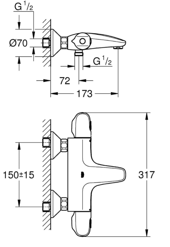 | Thiết kế | Bộ trộn sen bồn tắm treo tường nóng lạnh |