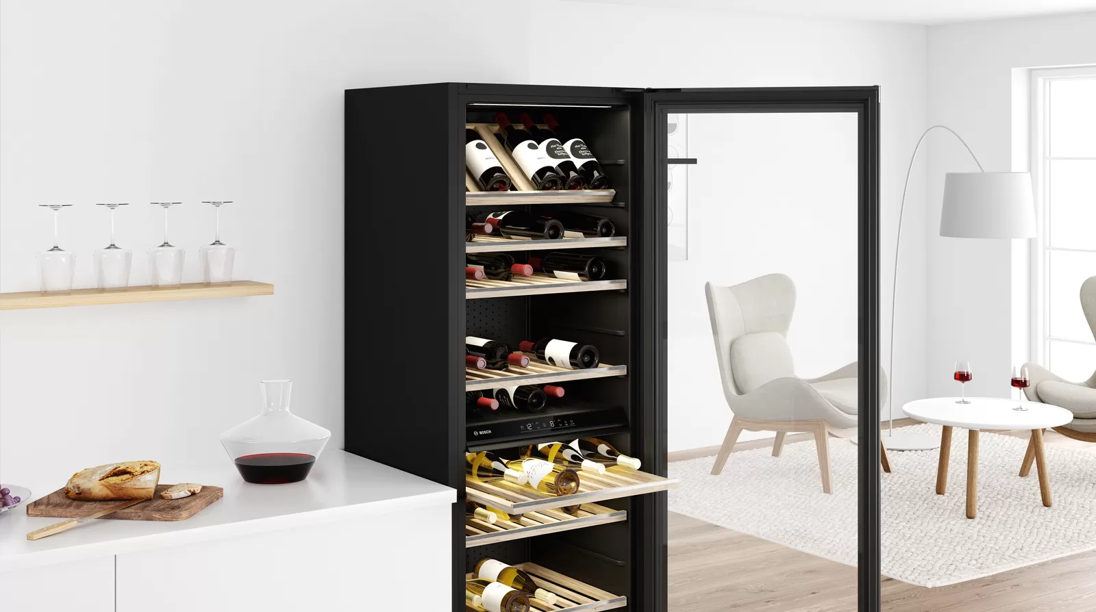- Dù là rượu vang đỏ hay rượu vang trắng: Từ nay bạn không còn cần đến những tủ lạnh đựng rượu riêng nữa. Trong tủ rượu hai vùng của chúng tôi, cả hai đều luôn duy trì nhiệt độ uống lý tưởng. Bảo quản rượu vang đỏ và rượu vang trắng ở tầng trên hoặc tầng dưới, với Bosch, bạn có toàn quyền lựa chọn.