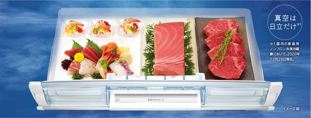 Cũng như các dòng tủ lạnh cao cấp của Hitachi, tủ lạnh Hitachi R-WXC62S được trang bị ngăn hút chân không có chức năng tương tự như cấp đông mềm. Với công nghệ này, một máy bơm chân không và cấu trúc chịu áp suất được sử dụng để hút sạch không khí trong phòng làm lạnh chân không. Trong môi trường chân không khoảng 0,8 atm và nhiệt độ -1 độ C, nó ngăn chặn quá trình oxy hóa thực phẩm và bảo quản chúng một cách thơm ngon hơn. Thực phẩm của bạn sẽ được làm đông nhẹ trên bề mặt và ngăn chặn quá trình oxy hóa. Nhờ vậy, thực phẩm sẽ không bị mất nước hay biến chất, cho món ăn luôn trọn vẹn hương vị thơm ngon lên đến 7 ngày bảo quản, đặc biệt bạn không cần phải rã đông trước khi nấu.