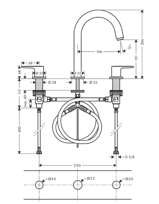 - Chiều dài vòi: 166 mm