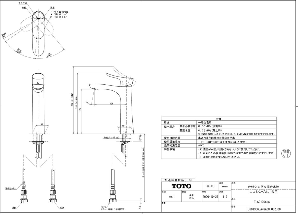 | Tên sản phẩm | Vòi Lavabo nóng lạnh nội địa Nhật TOTO | TLG01306JA |