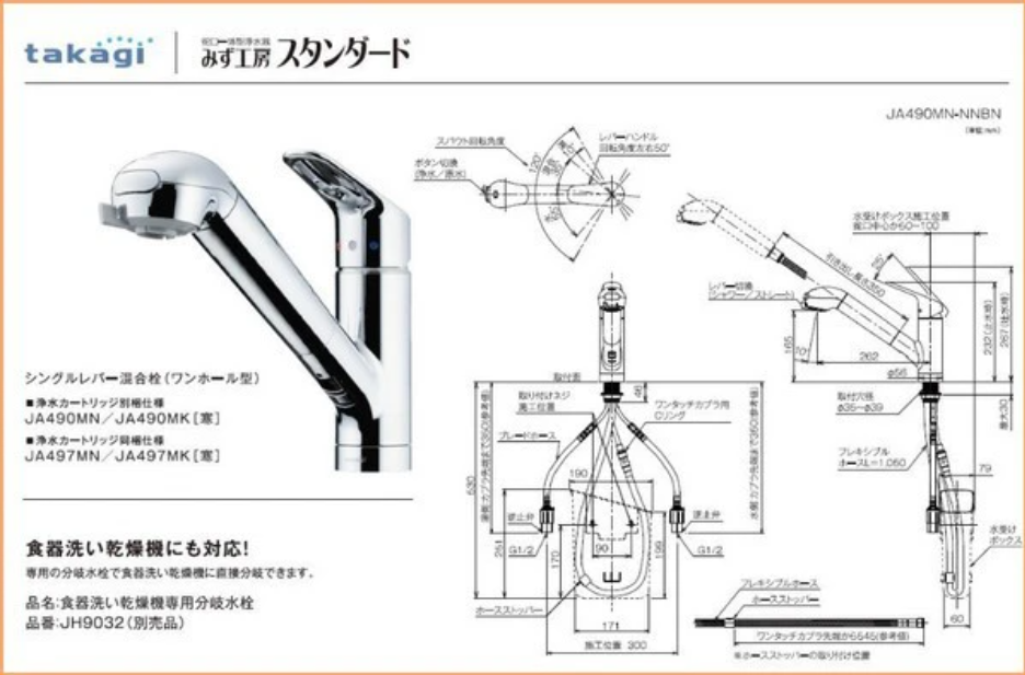 Vòi rửa bát Nhật nội địa TAKAGI | JA497MN-9NTN-02